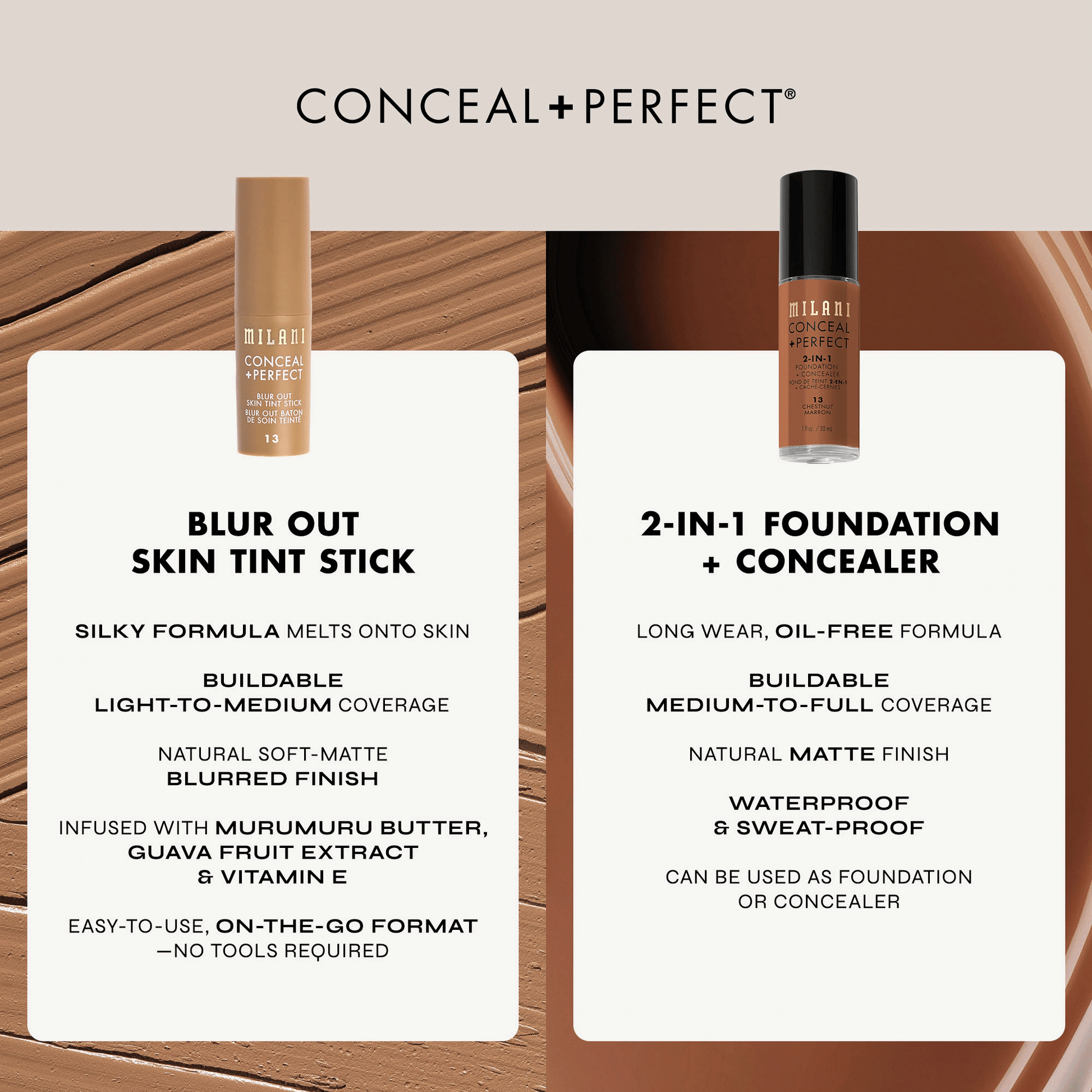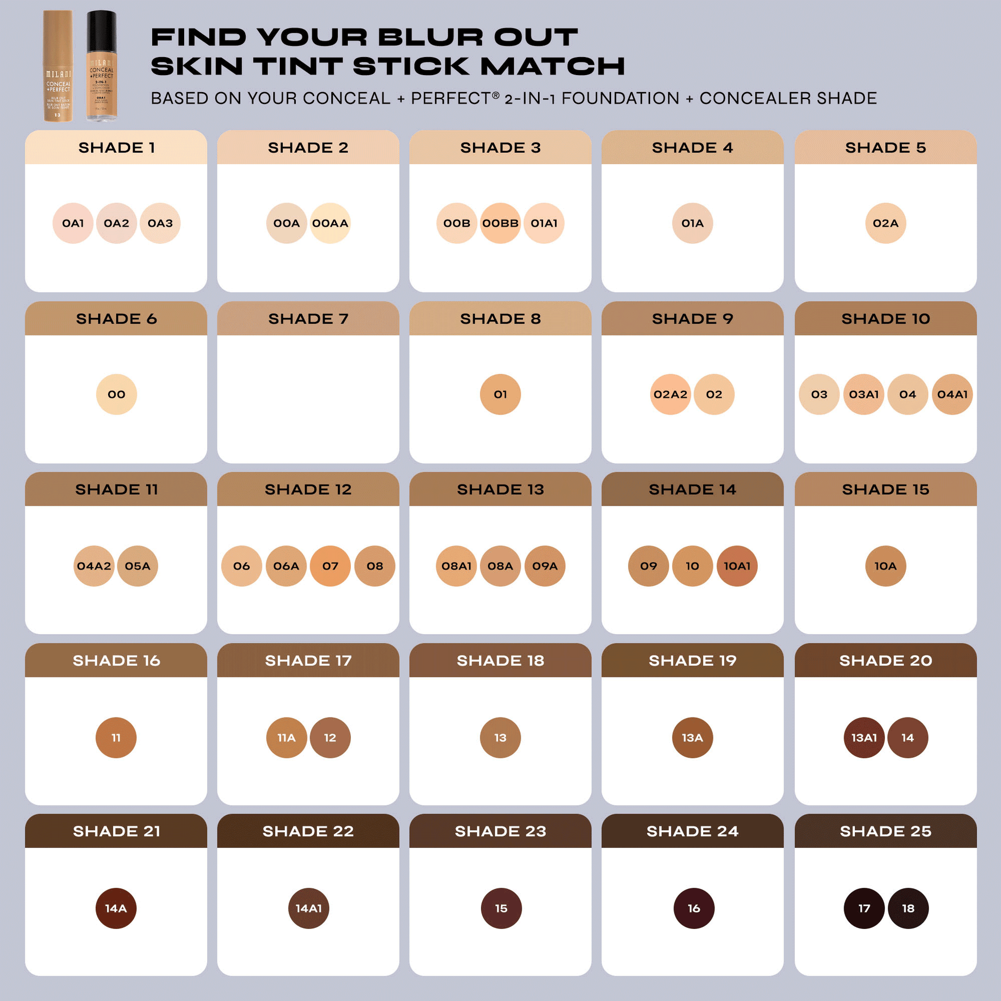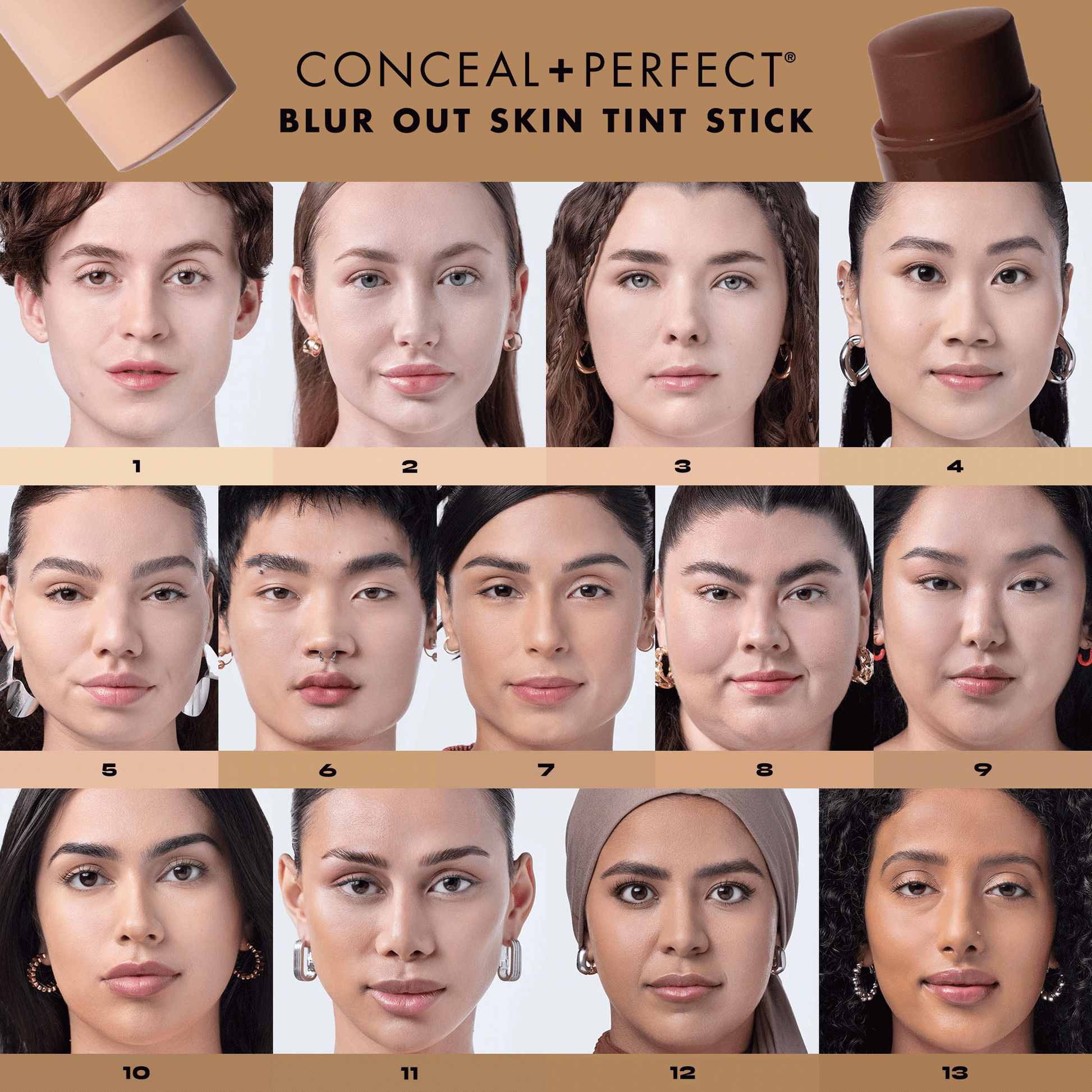 Soft filtered skin is just a swipe away. This ultra-blurring, nourishing formula melts onto skin delivering buildable light-to-medium coverage with a natural soft-matte, second skin finish. Infused with moisturizing Murumuru Butter, Vitamin C-rich Guava Fruit Extract & antioxidant Vitamin E, Conceal + Perfect Blur Out Skin Tint Stick is designed to effortlessly blur lines, even tone, & help hydrate skin. Available in 25 flexible shades made to flatter all tones.