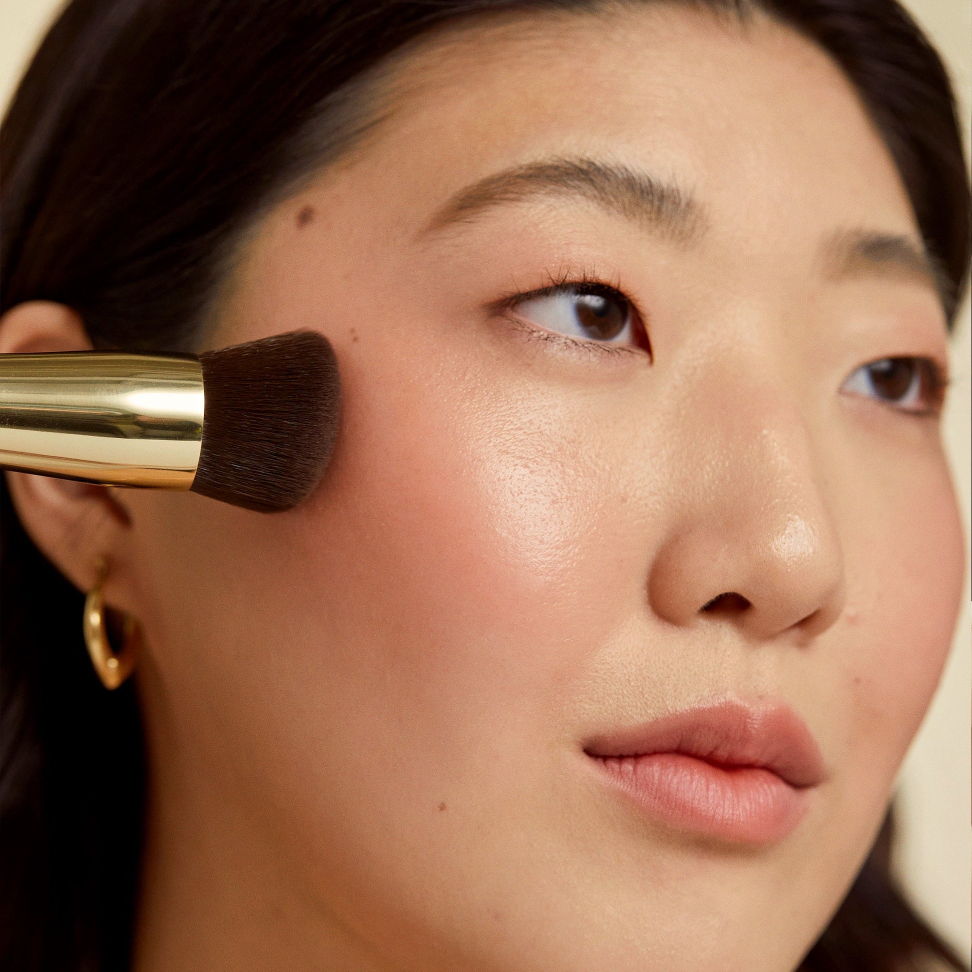 Made with densely packed vegan bristles, this luxurious feeling, multi-use buffing brush effortlessly blends liquid & cream products on to skin. The angled, domed shape allows the brush to move with the contours of the face for a flawless, streak free finish every time. Can be used to apply liquid & cream foundation as well as blush, bronzer & contour.