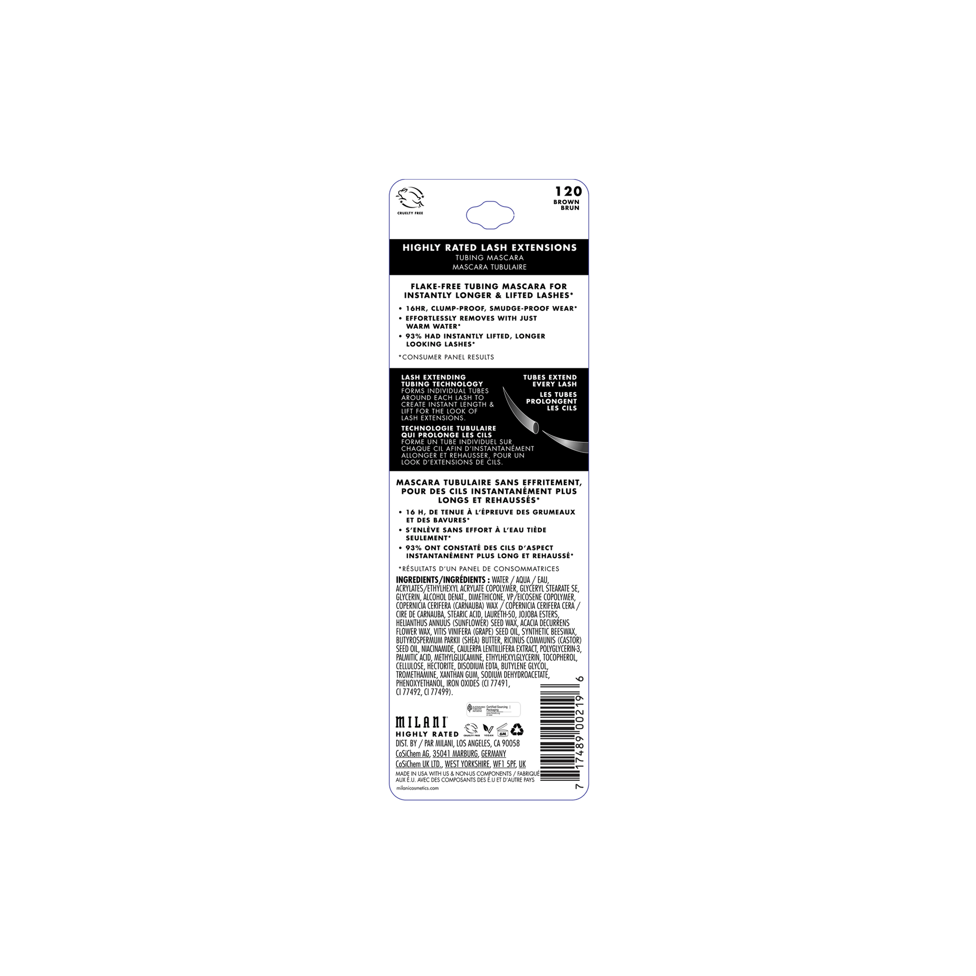 Can I get an extension on that? Milani Highly Rated Lash Extensions Tubing Mascara dramatically extends and lifts lashes for that false lash look. This Japanese-inspired Lash Extending tubing technology wraps each lash with tube-like polymers to add instant length and lift. The non-flaking, no-clumping formula applies seamlessly, lasts up to 16-hours and removes effortlessly with just warm water. Infused with Shea Butter & Castor Seed Oil, this power-house mascara also helps nourish and condition lashes as you wear it.