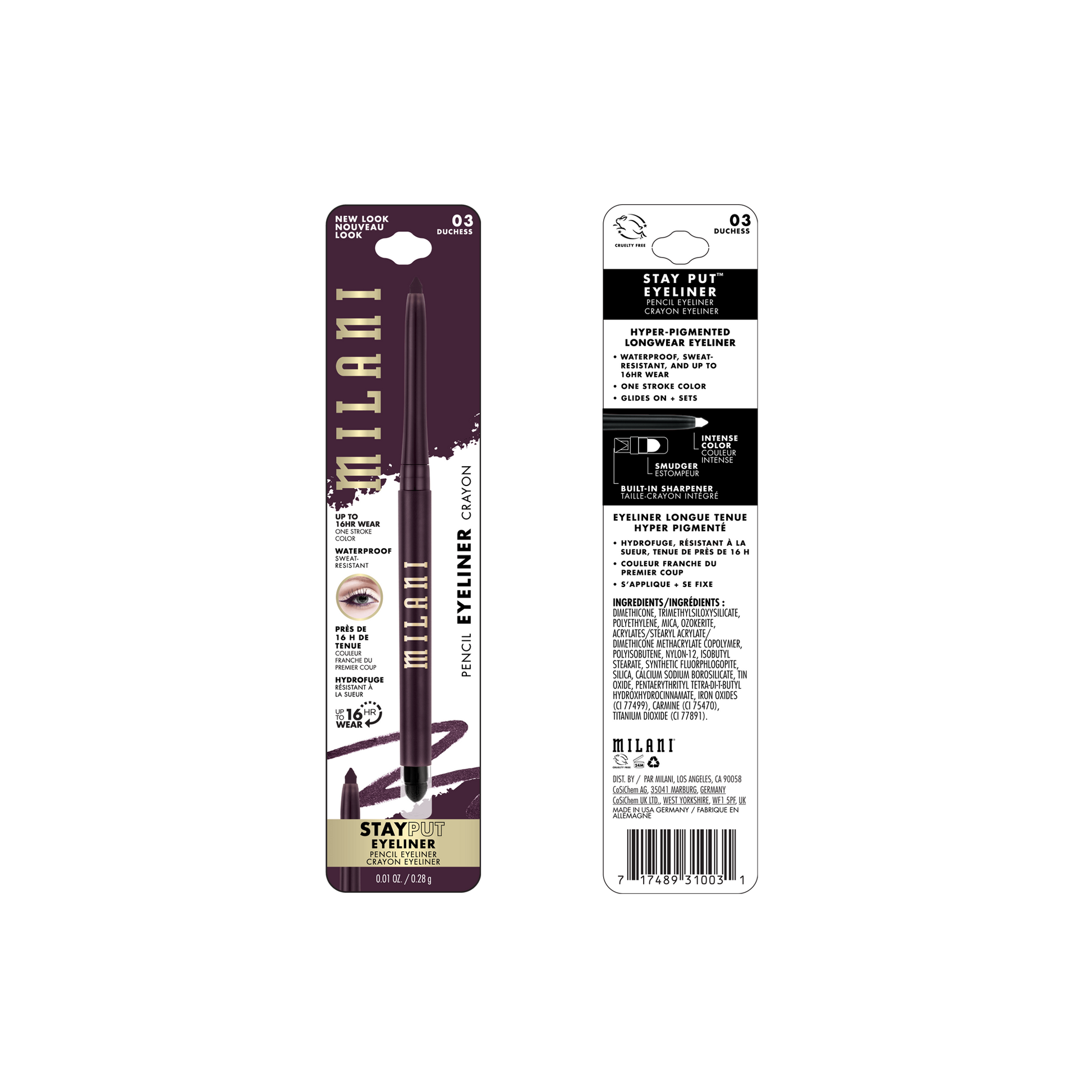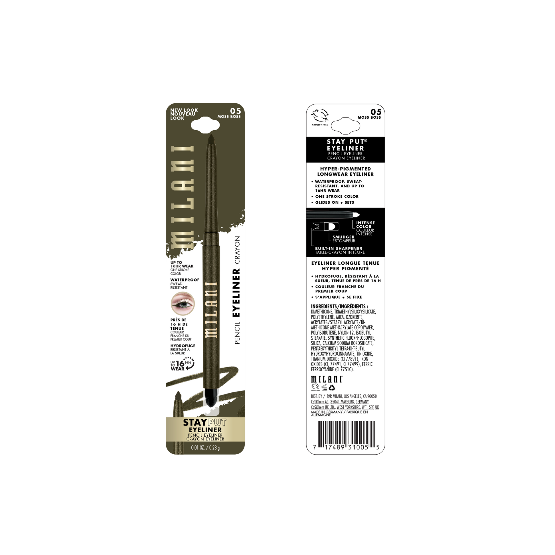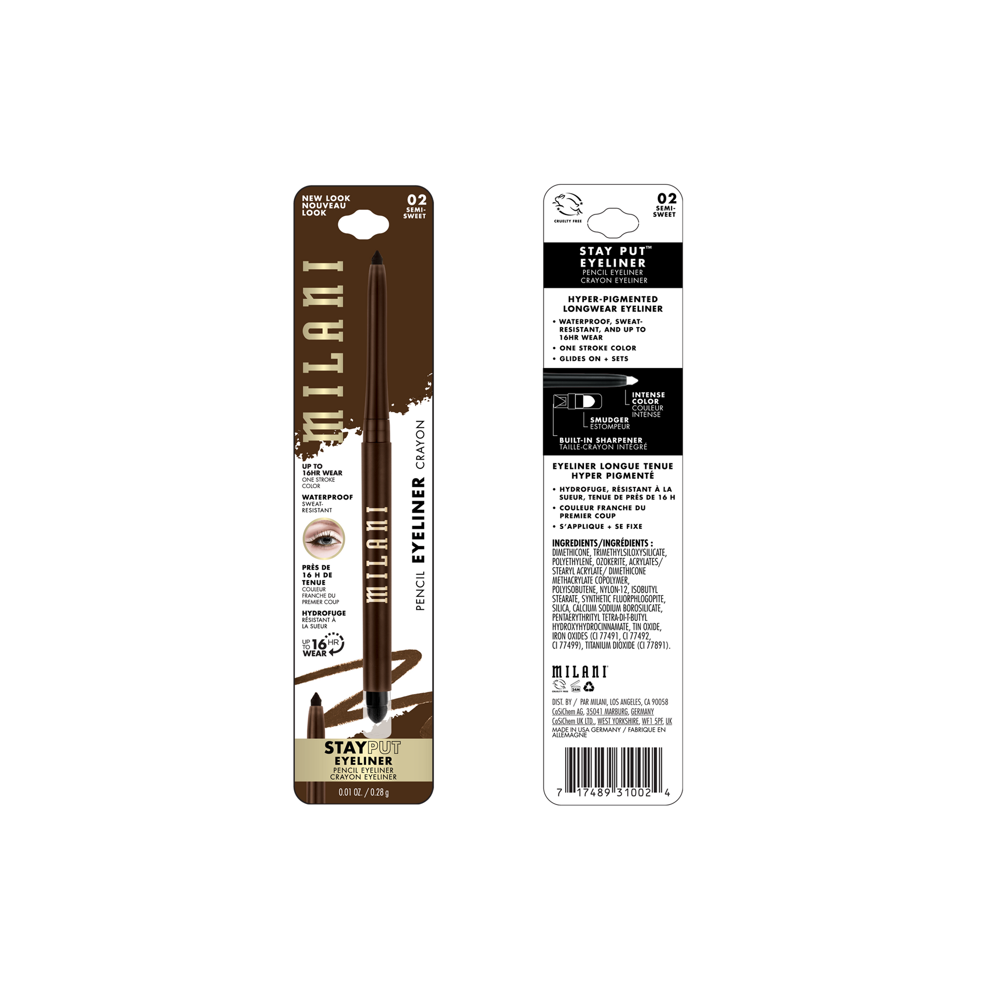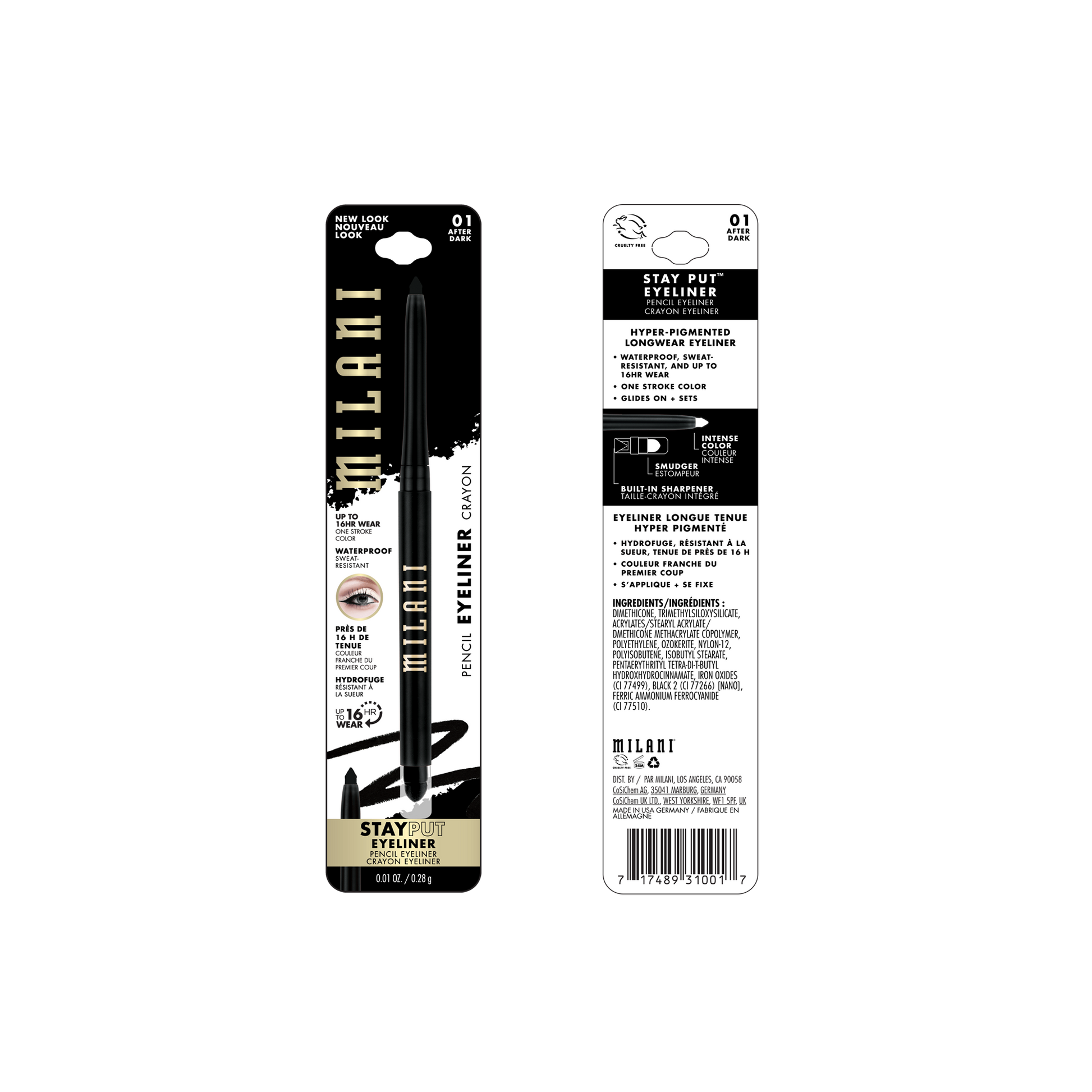 Stay Put goals! There's a reason our signature long-lasting eyeliner is such a bestseller. (That staying power, though!) Milani Stay Put Eyeliner is wonderfully waterproof and sweat-resistant, so you can take a dip and your liner won't quit. It's pool proof, puddle proof and cry proof -- so you'll enjoy electric color no matter what you get up to. This all-in-one eyeliner pencil features a built-in sharpener to keep your tip in top shape, plus a clutch smudger tool for even more versatility. Smoke it or set it for day or dark -- the choice is yours with this long-lasting eyeliner. Color inside the lines or smudge a statement; go for blurred lines or sharp shapes -- we won't judge. Life-proof your liner: This best drugstore eyeliner goes everywhere you want it and nowhere you don't.