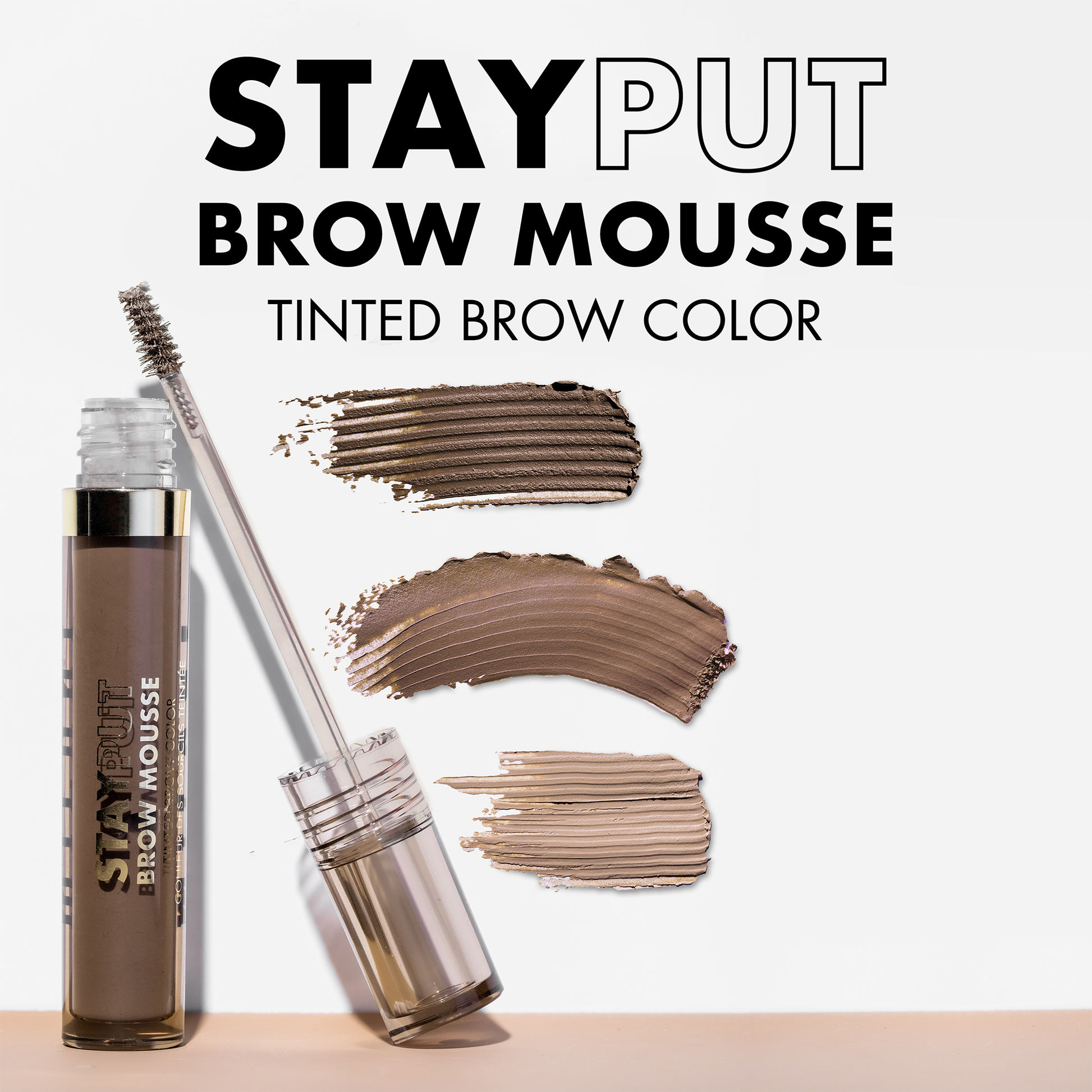 Take brows from thick to thicker & lock them in for the long-haul! Stay Put Tinted Brow Mousse has your brows covered- covered in an ultra-nourishing, high-pigment tint that is. This buildable, thickening mousse is infused with Shea Butter, Jojoba Seed Oil & hair nourishing Panthenol Vitamin B5 to condition brows while taming & boosting them to their lushest, fullest arch. With smudge-proof, flake-free wear that lasts up to 16HRS, this formula takes brows to the next level in 5 flattering shades.?